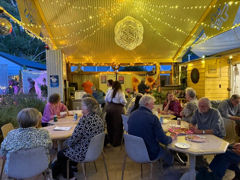 Food is available throughout the evening, including freshly made offerings by Maria with her Kransky menu and seasonal dishes include grilled chicken souvlakia, fresh salads and a hearty Tunisian chickpea stew.