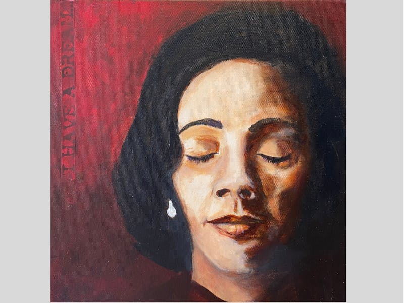 Working with colour, form, texture, and layered mixed media, Hopkins presents expressive interpretations of the natural world and everyday life. Her practice invites quiet reflection and personal connection, encouraging viewers to find meaning in the familiar. A featured series, Behind Every Great Man, highlights overlooked narratives of women whose significant contributions have historically been overshadowed, drawing attention to themes of recognition, feminism, and storytelling.