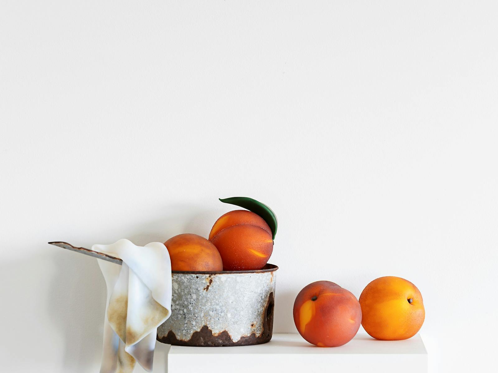 The Poetry of Things is a reflection on the quiet beauty found in the everyday. Drawing inspiration from the domestic and utilitarian, Rea and Blair turn their attention to objects that are often overlooked such as peaches, tin cans, cloths, brushes, translating them into lustrous glass still life’s that are at once familiar and transformed. Through this process of