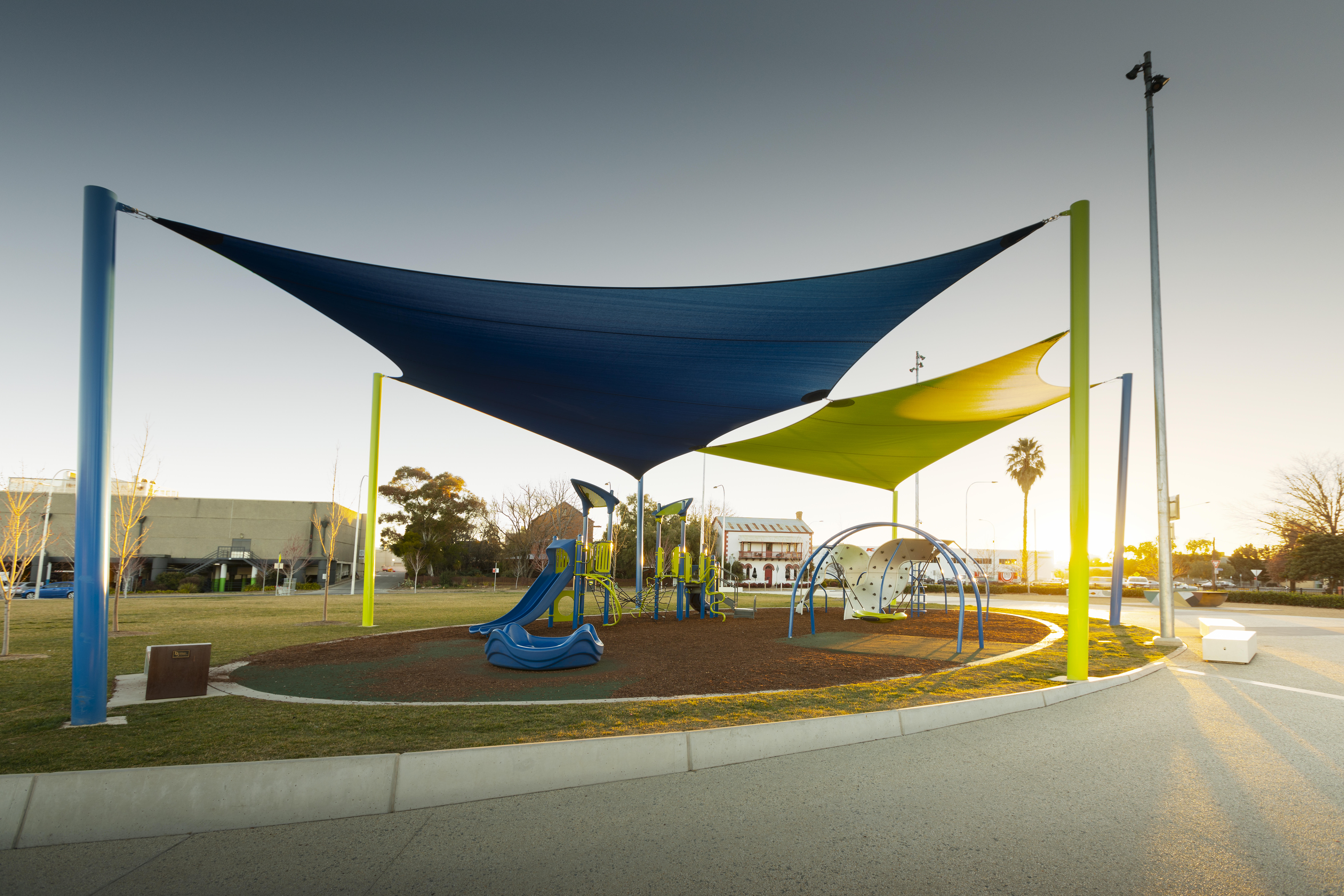 - All-abilities playground with climbing structures and shaded areas